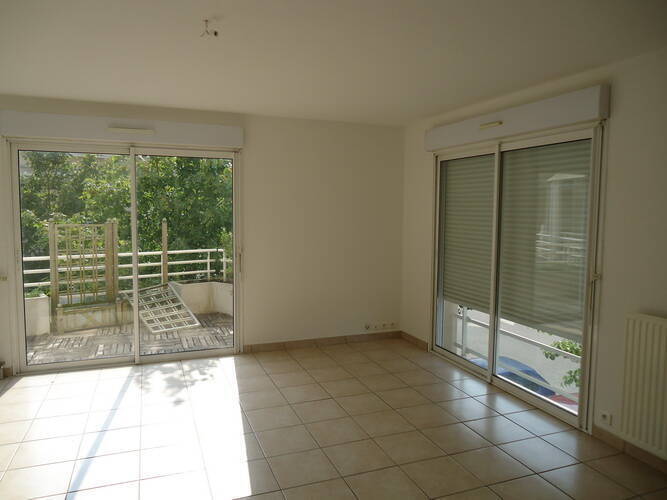 T3 Duplex. Entrée, séjour avec cuisine américaine (meubles, hotte), WC. A l'étage: 2 chambres, salle de bains. Chauffage collectif gaz individualisé (VGR) facturation par un prestataire extérieur. Garage N°11 au sous- sol.